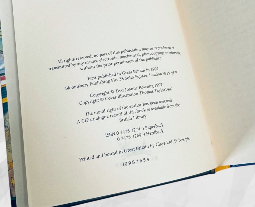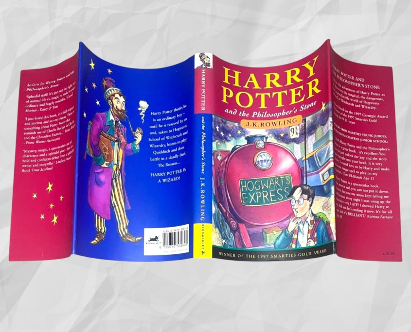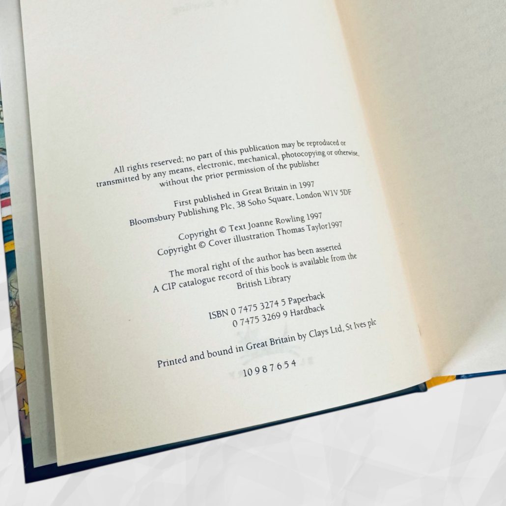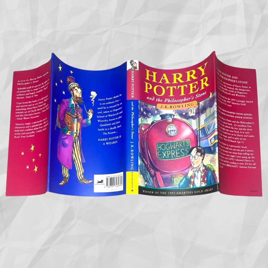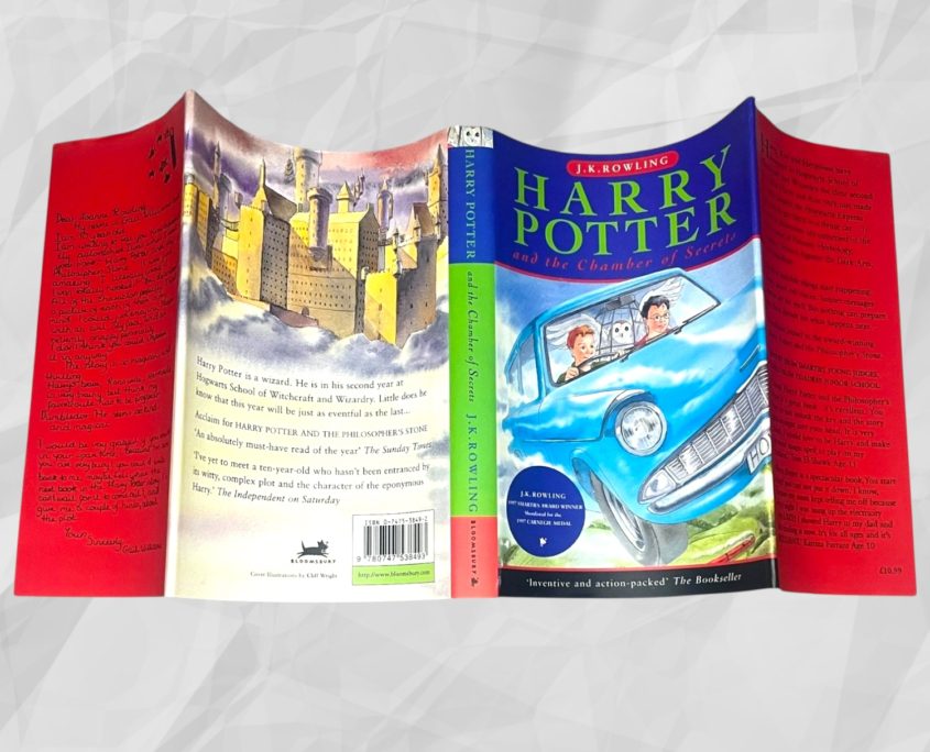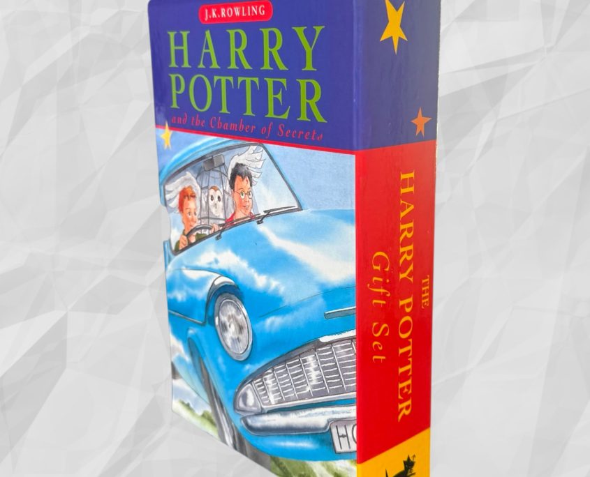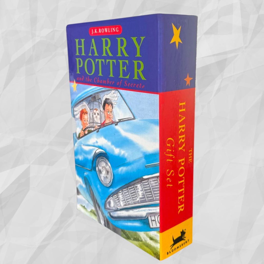 Released in the run-up to Christmas 1998, this original Bloomsbury Harry Potter Gift Set contains a 4th printing of Harry Potter and the Philosopher’s Stone and a 7th printing of Harry Potter and the Chamber of Secrets, housed in the original illustrated card slipcase. A small number of variant sets were issued with a 5th printing of Philosopher’s Stone and a 10th printing of Chamber of Secrets; however, this set conforms to the earlier and more desirable configuration.