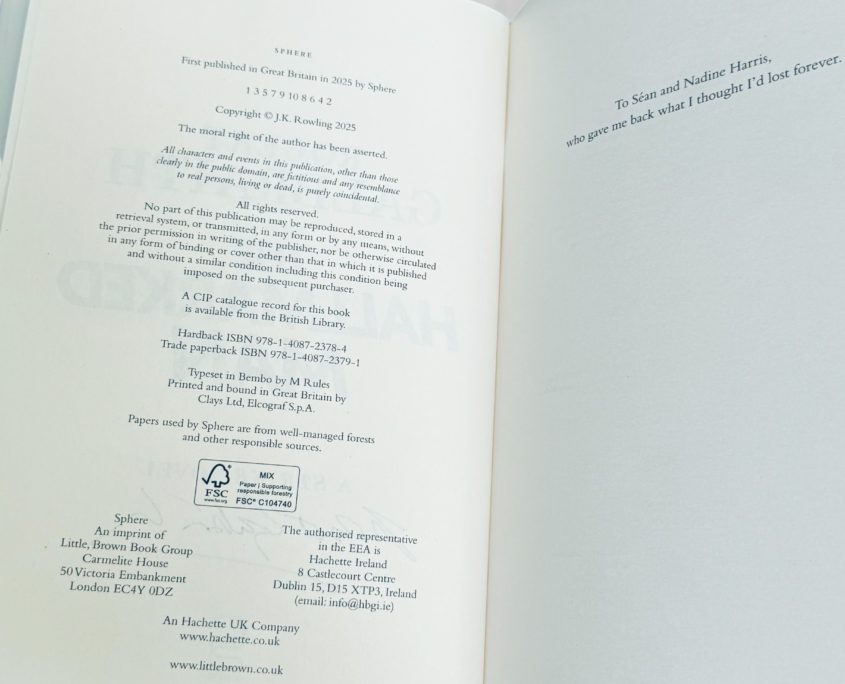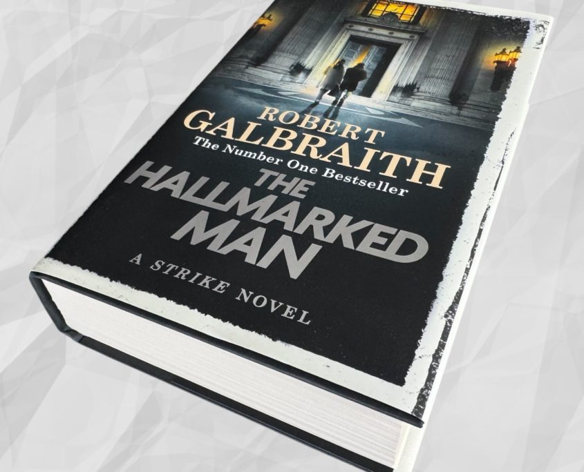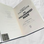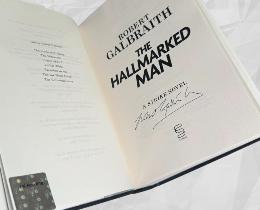 The Hallmarked Man, published by Sphere in 2025, completes the series. This signed first edition was purchased directly from the original purchaser, the company “Cards and Sneakers,” who bought the book from Waterstones on the day of release. As with the later volumes in the series, the official hologram is affixed to the page adjacent to the signature.