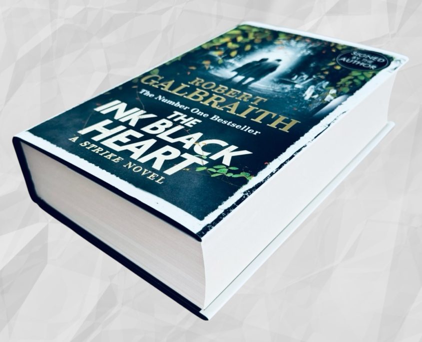 The Ink Black Heart, published by Sphere in 2022, is a signed first edition bearing both the “Signed by the Author” sticker to the dust jacket and the official hologram on the adjacent page to the signature. It is accompanied by the original Waterstones receipt for £25, a dispatch note dated 30th September 2022, and a handwritten letter from the original purchaser, Jason Nunn, to Adam Houston.